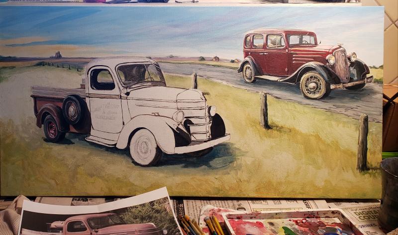 I like to take my own photos to work from when possible.The reflections are the key that makes the chrome pop. I usually get a painting done in 2-4 weeks, depending on the details.